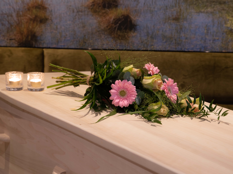 Klein passend boeketje tegen betaalbaar budget om mee te nemen of te laten bezorgen bij een uitvaart of crematie.